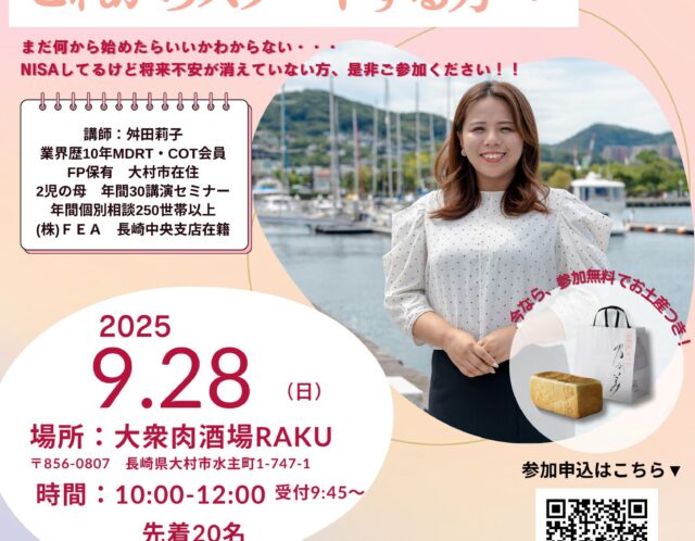 【FP 舛田】は長崎県大村市を拠点に、お金にまつわるあらゆるご相談を承っております。「資産運用を始めたいけど何から始めていいのかわからない」「ライフプランについて相談したい」など、お金に対する不安がある方、ぜひ一度ご相談にいらしてください。